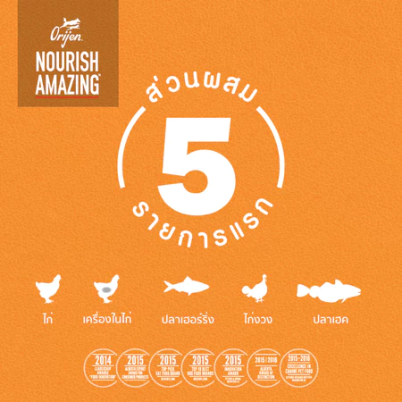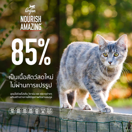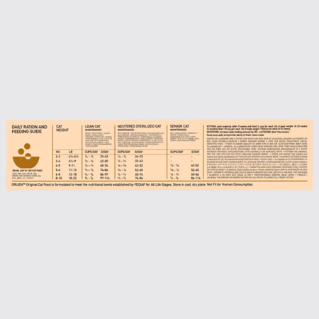 อาหารแมว ORIJEN Original ได้รับการคิดค้นสูตรเพื่อให้ตรงตามระดับสารอาหารที่กำหนดไว้ในโปรไฟล์สารอาหารอาหารแมวของ AAFCO สำหรับทุกช่วงชีวิต