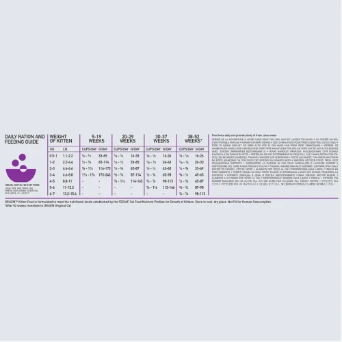 - ปริมาณอาหารต่อวัน Feeding Guidelines น้ำหนัก 2 กก. 38 กรัมต่อวัน Weigh 2kg. 38g./day น้ำหนัก 3 กก. 57 กรัมต่อวัน Weigh 3kg. 57g./day น้ำหนัก 5 กก. 76 กรัมต่อวัน Weigh 5kg. 76 g./day